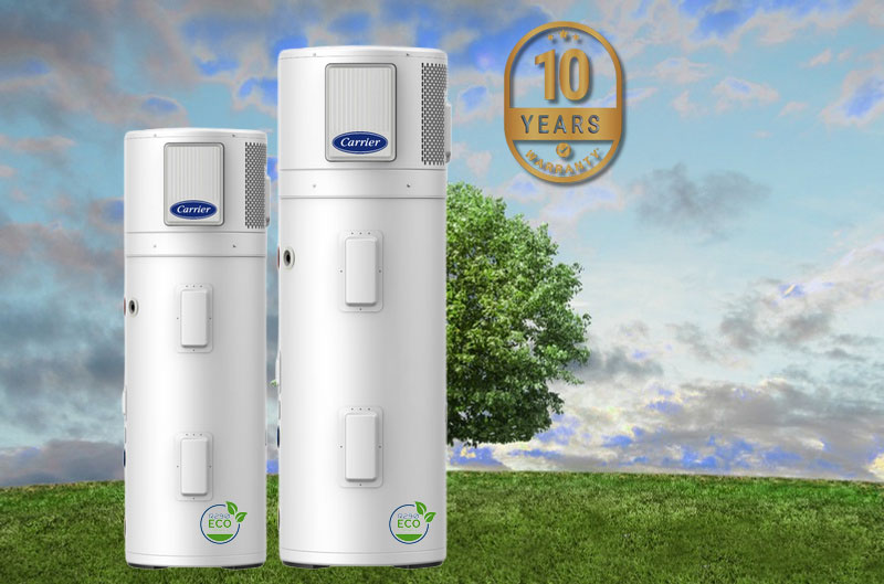 Harvest the free energy from our plentiful air to heat your water with the advanced Carrier heat pump from Carrier. This renewable energy water heating technology uses up to 77% less energy1 than a conventional water heater, whilst providing reliable hot water all day and night.