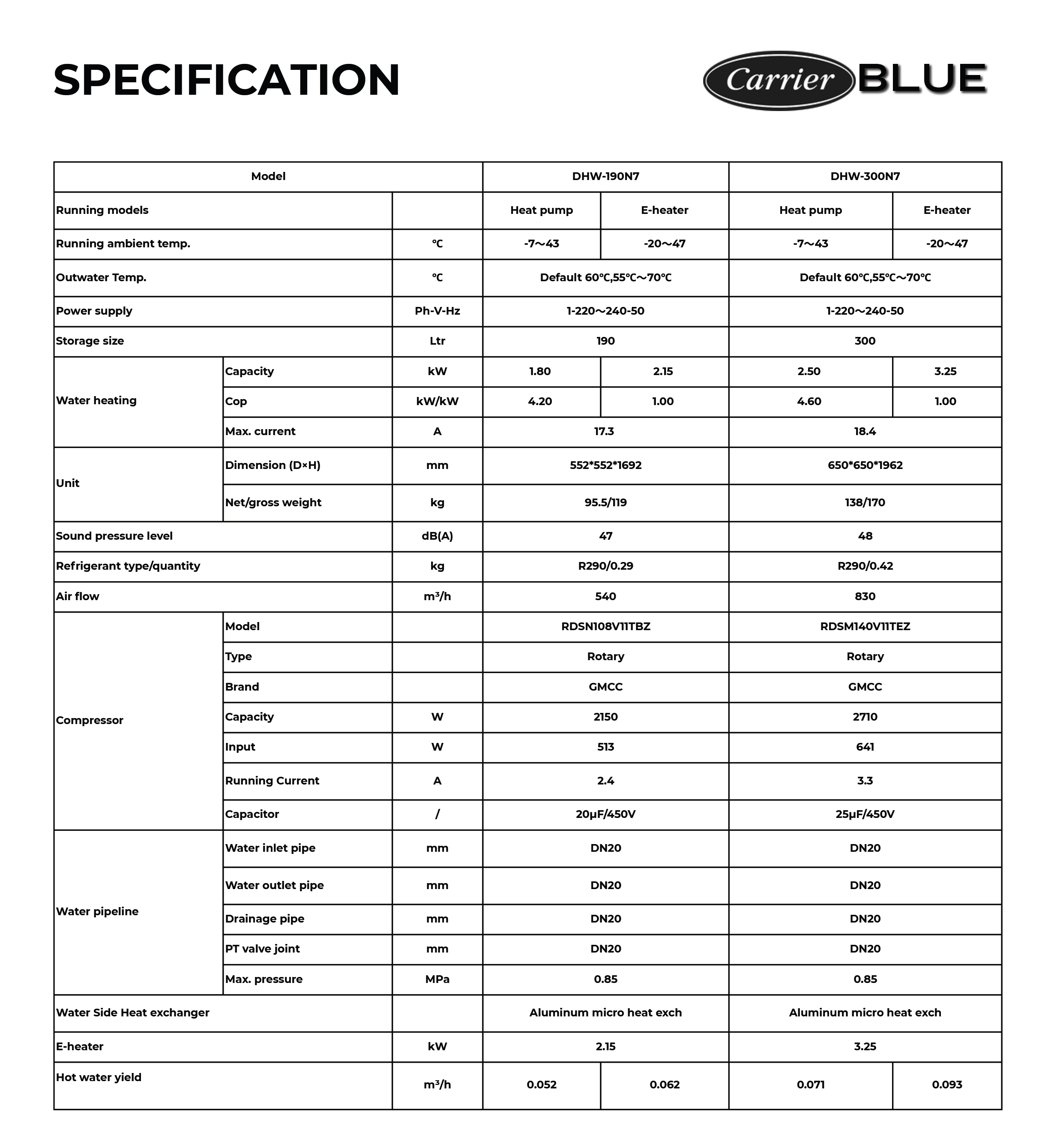 E-Heater: When the air temperature drops to below 5°C, the heat pump will automatically select E-heater mode for an electric hot water boost.